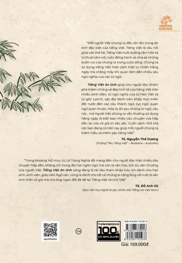 Nhắc đến sự giàu đẹp của tiếng Việt, đa số chúng ta thường chỉ nghĩ đến sáu thanh: sắc, huyền, ngang, hỏi, ngã, nặng – chất liệu khiến “nói nghe như hát”. Thế nhưng khi tìm hiểu sâu hơn, ta mới thấy tiếng Việt còn đẹp vô cùng bởi cách dùng từ, bởi sự vận dụng linh hoạt những từ mượn; bởi các câu tục ngữ, ca dao; bởi tên địa danh, tên món ăn, đồ uống… Đó là những tinh hoa đã được ông cha đúc kết lại trong suốt mấy ngàn năm lịch sử mà chỉ cần lần dở lại những trang sách ngày xưa, ta sẽ thấy ngay cả một kho tàng. Tiếc rằng vì nhiều lý do khách quan mà với đa số mọi người, kho tàng vô giá kia vẫn còn ẩn hiện sau lớp sương mờ, chỉ những ai hữu duyên mới có cơ may khám phá. Song song với đó là sự phổ biến của mạng xã hội và nhu cầu học ngoại ngữ, tuy có nhiều tác động tích cực nhưng cũng kèm theo nhiều mặt trái, khiến một bộ phận các bạn trẻ yêu thích và ưa chuộng tiếng nước ngoài hơn khi chưa kịp hiểu rõ cái hay, cái đẹp của ngôn ngữ quê nhà. Đây là một hệ quả tất yếu của quá trình hội nhập , và mọi chỉ trích, lên án đều không phải là giải pháp hữu ích, dài lâu.